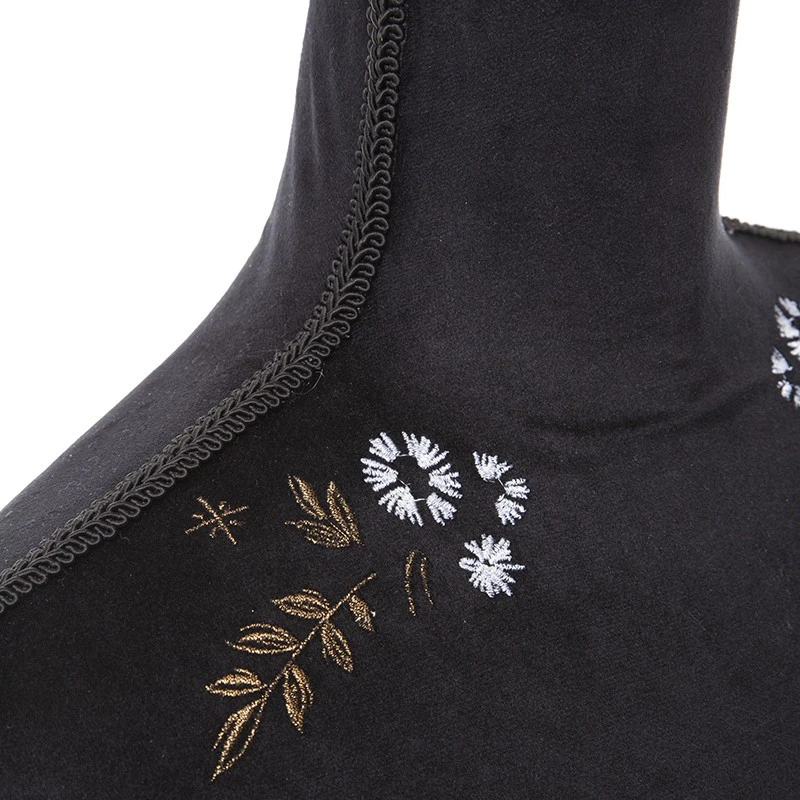Le velours noir profond ainsi que les dĂ©corations fleuries en broderie apportent beaucoup d’Ă©lĂ©gance Ă ce mannequin dĂ©coratif.Â