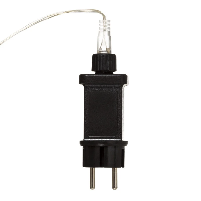 L’allumage LED se branche par prise murale avec transformateur IP44 (Ă©tanche). Taille du fil : 3 mètres. Â