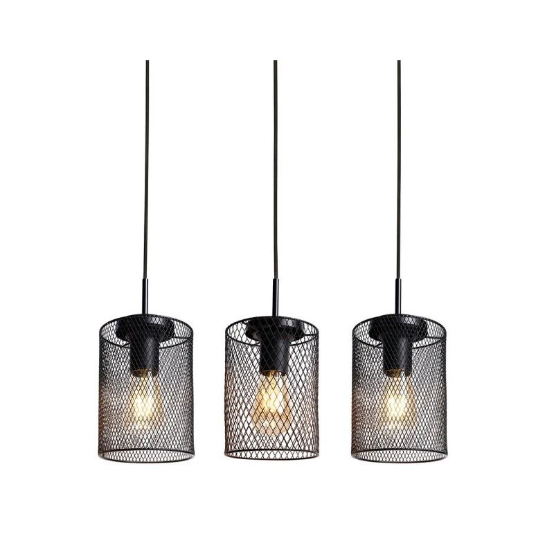 Optez pour le style industriel avec ce luminaire rampe composé de 3 abat-jours en grillage noir de la marque Ostaria.
